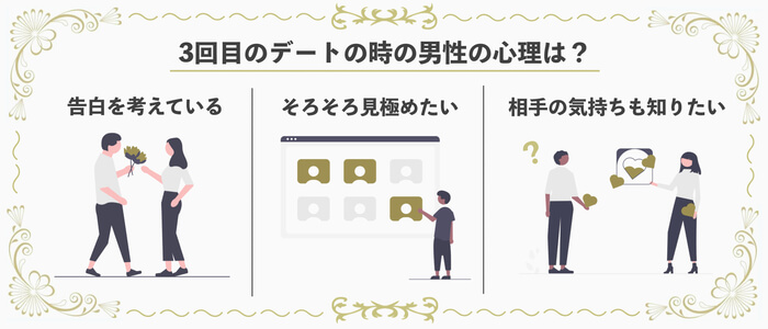 デートを重ねていき、3回目のデートとなると、どのような心理に変わっていくのでしょうか。