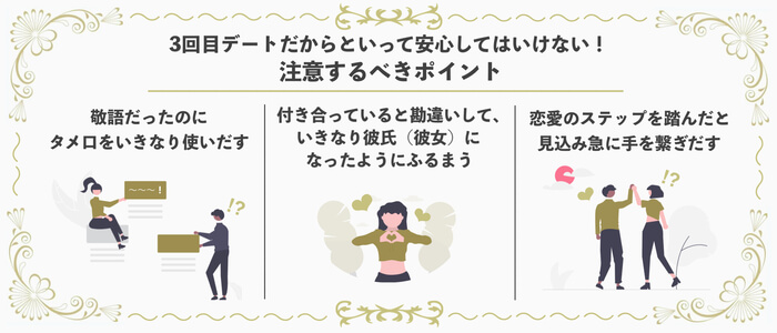 3回目デートだからといって安心してはいけない!注意するべきポイント