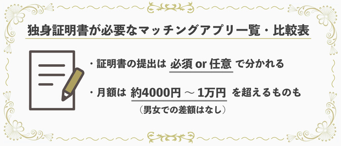 独身証明書が必要なマッチングアプリ一覧・比較表