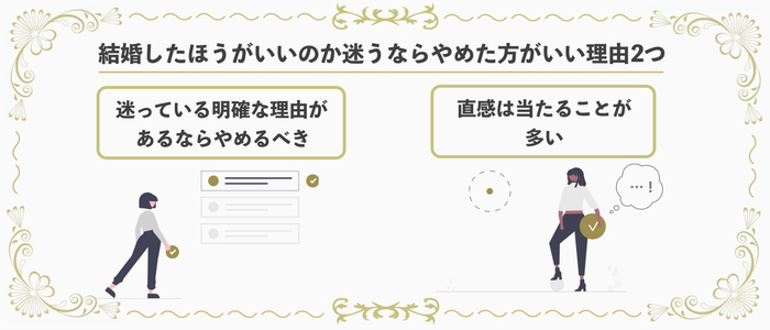 以上、結婚を迷ったらやめたほうがいい理由について解説しました。