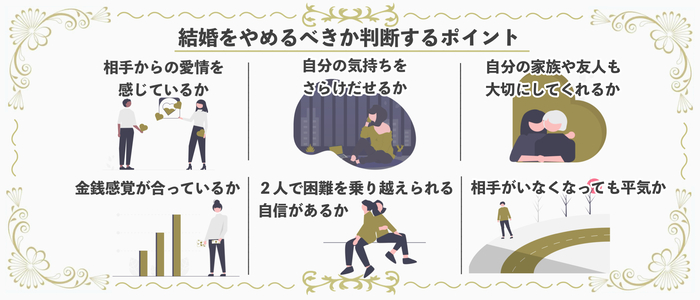 では実際に、どのような基準をもとにして、結婚をやめるべきか判断するとよいのでしょうか?