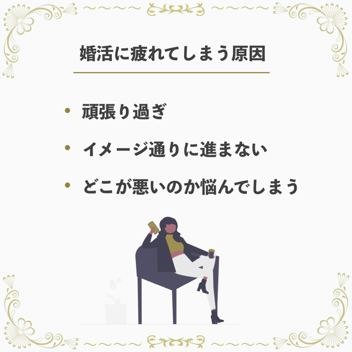 婚活に疲れてしまうときには、どのような原因が考えられるのでしょうか。