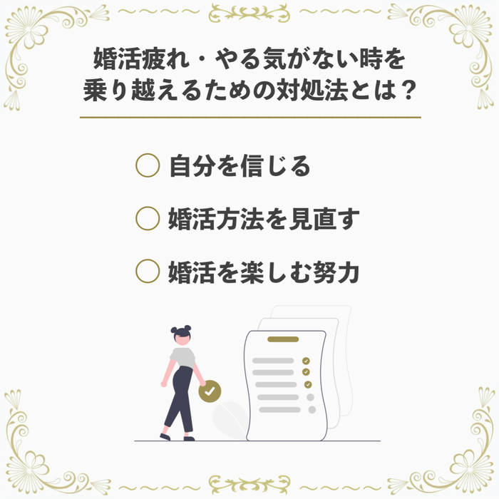 先ほどもお話ししましたが、思うように婚活が進まないと、やる気がでなくなることは誰にでもあるもの。