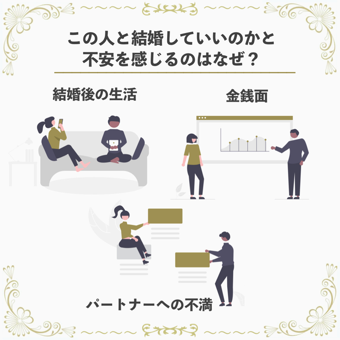 結婚後はパートナーとともに生きていくことになるので、パートナーに対して何か不満があれば結婚することが不安になるのは自然なことです。