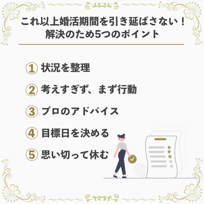 - これ以上婚活期間を引き延ばさない!解決のため5つのポイント